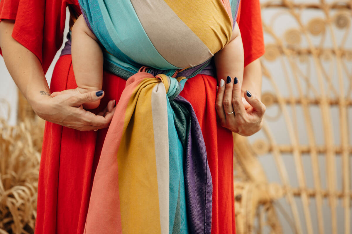 Szerokość chusty to ok. 60-70 cm. Różnią się one długością - w zależności od wybranego rozmiaru: od 4 (XS) do 8 (XL).