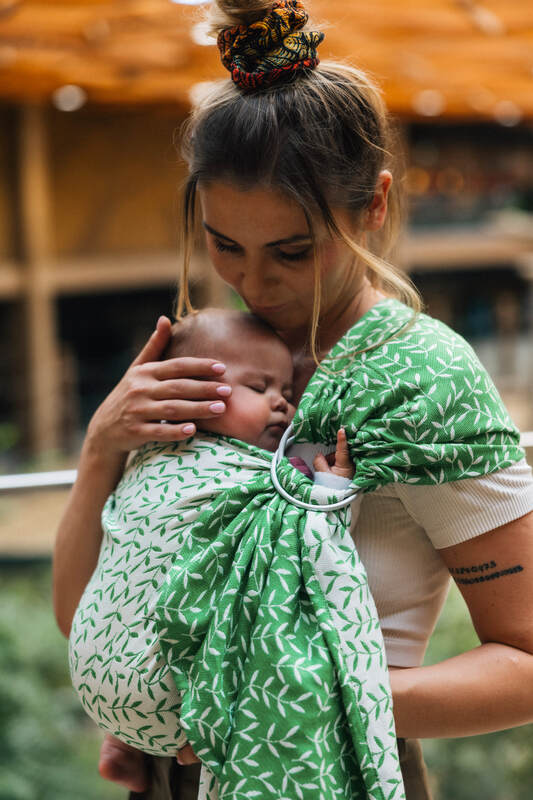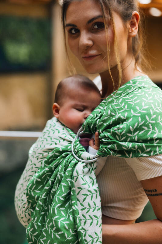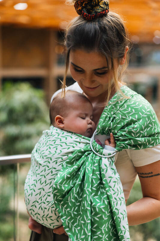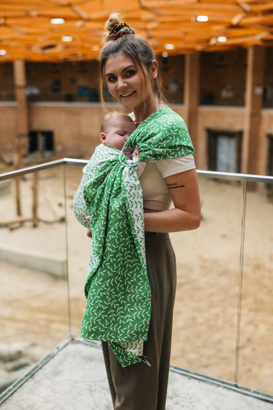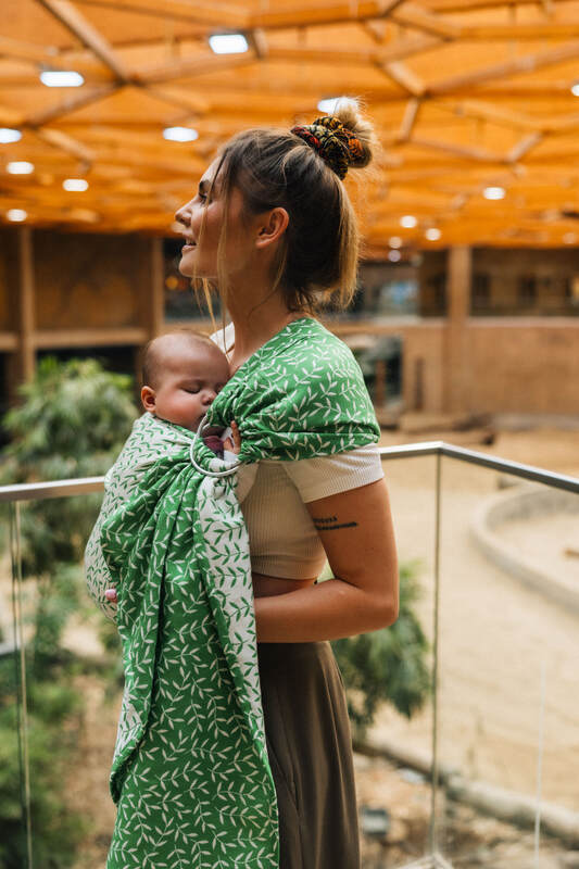 Żakardowa chusta kółkowa do noszenia dzieci, ramię bez zakładek, (54% bawełna, 46% TENCEL™ Lyocell) - ZACZAROWANY ZAKĄTEK - EVERGREEN - standard 1.8m