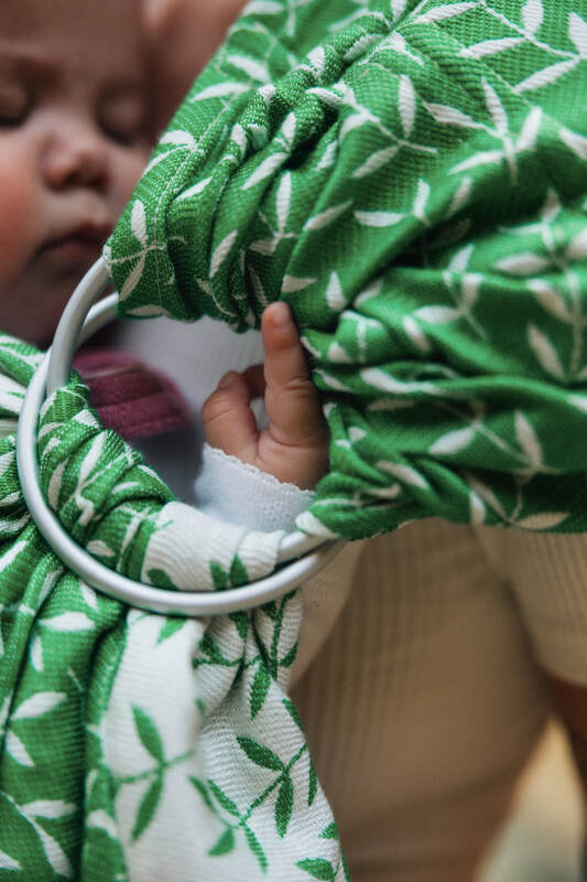 Nie wymaga wiązania! Wystarczy przełożyć chustę przez kółka, włożyć dziecko i dociągnąć. Jest lekka i zajmuje niewiele miejsca